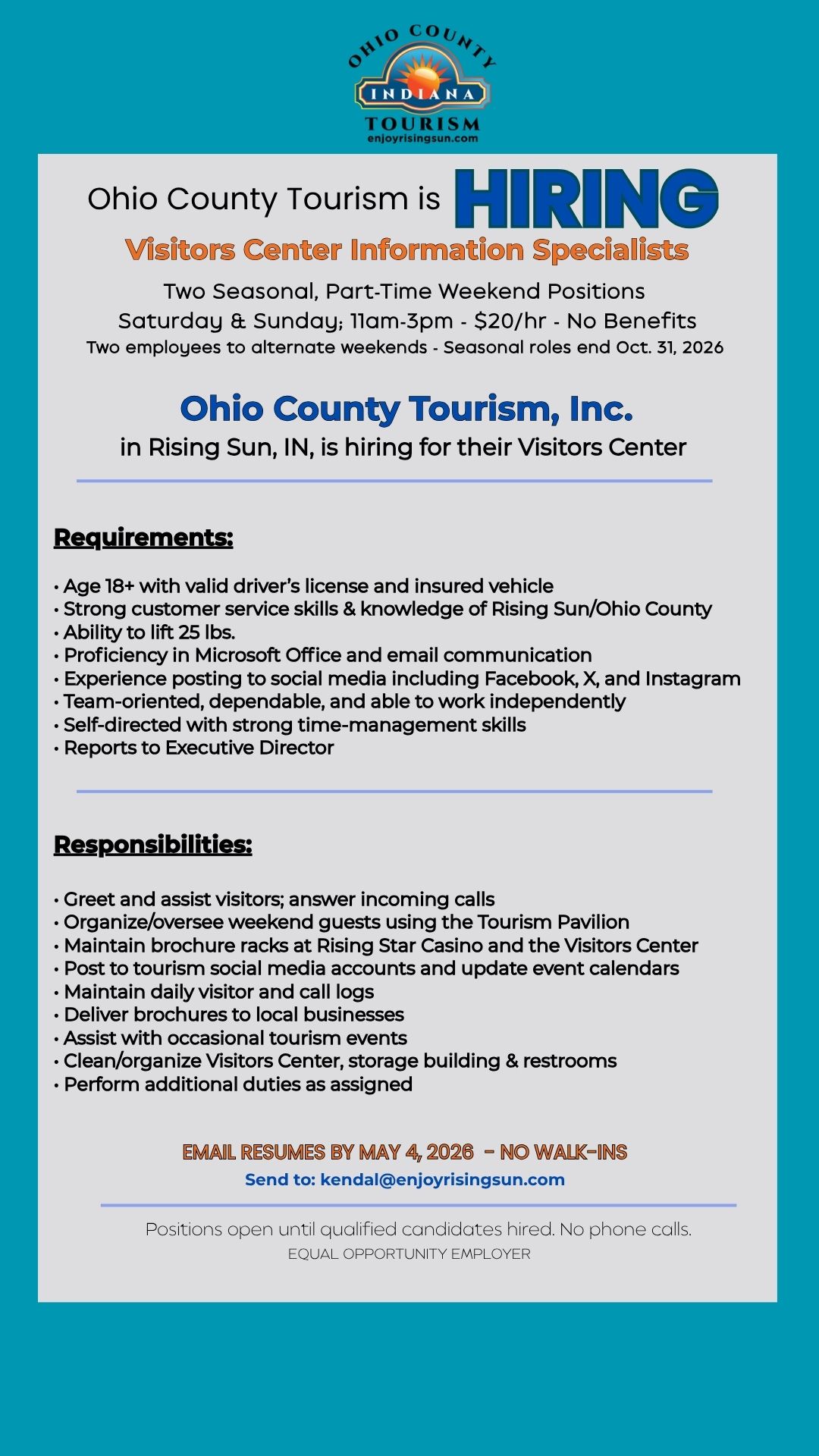 Still Hiring: Weekend Visitors Center Staff