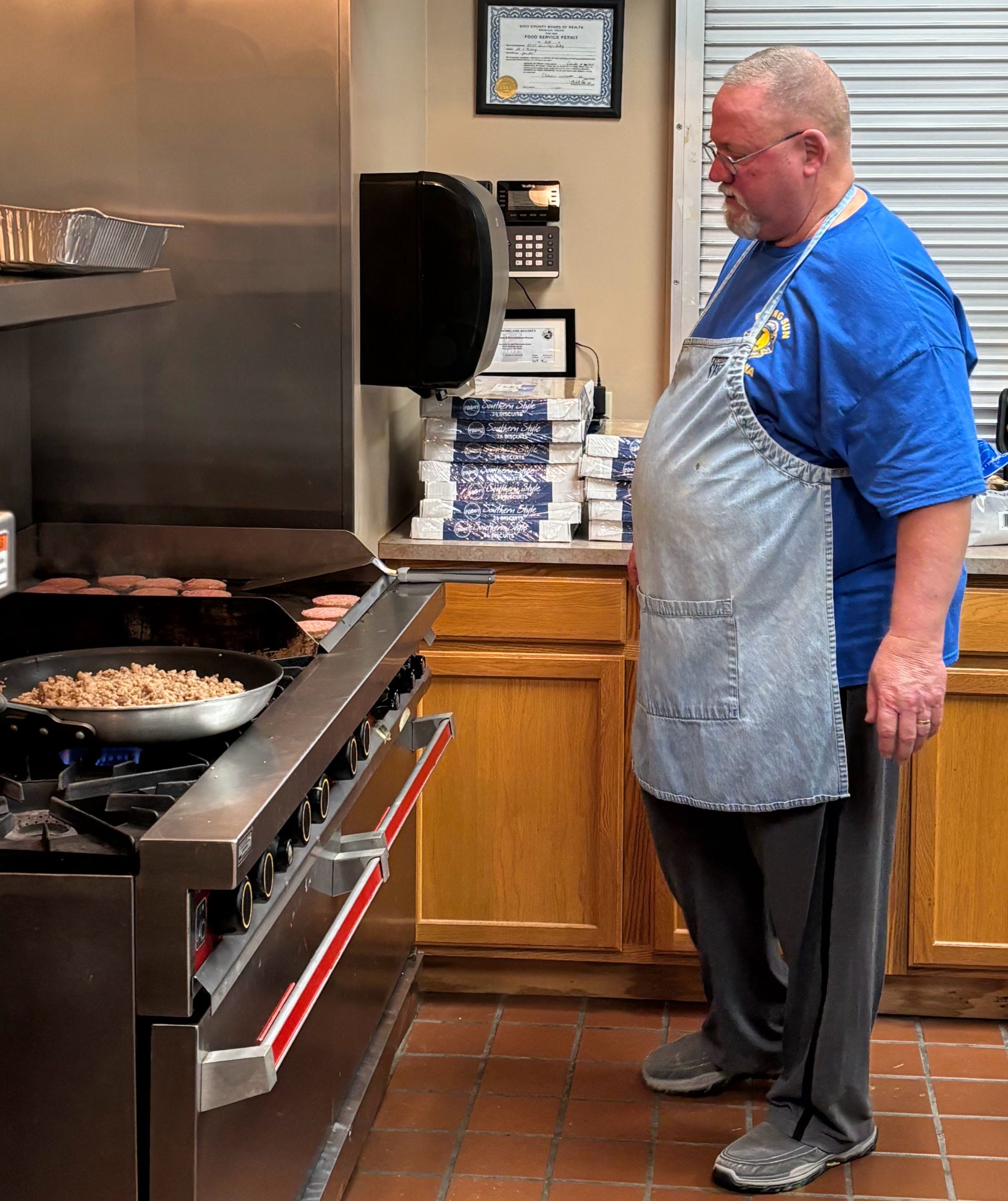 Volunteers kept the grills busy Saturday morning as the Rising Sun Lions Club hosted their annual pancake breakfast.